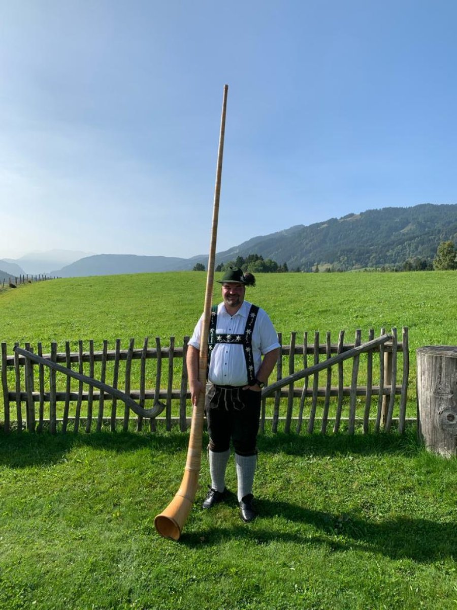 Hergestellt würden Alphörner inzwischen auch industriell. In der Region gebe es aber noch drei Instrumentenbauer, die das rund vier Meter lange Horn aus einem einzigen Baum fertigen. Aus drei Teilen zusammengestellt, sei es zwar etwas „unkommod“, aber durchaus transportabel.