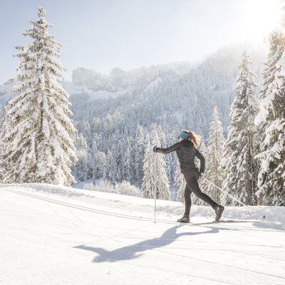 Am liebsten laufe ich direkt von zu Hause los über die Dorfloipe und dann in die Täler von Oberstdorf Birgsau oder Spielmannsau.