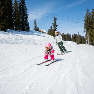 Mein Mann Julian und unsere Tochter (mein Sohn ist aktuell noch zu klein, aber den nehmen wir in Zukunft natürlich auch mit), meine Riesenslalomski, eine harte und leere Piste, 15 Grad minus und natürlich Sonnenschein. Und am allerbesten noch ein Abschlussgetränk beim Boddar.