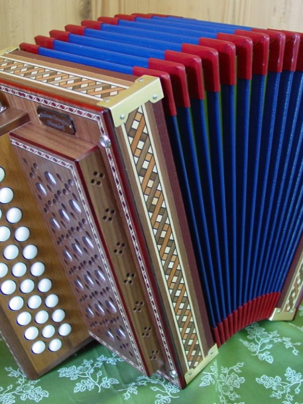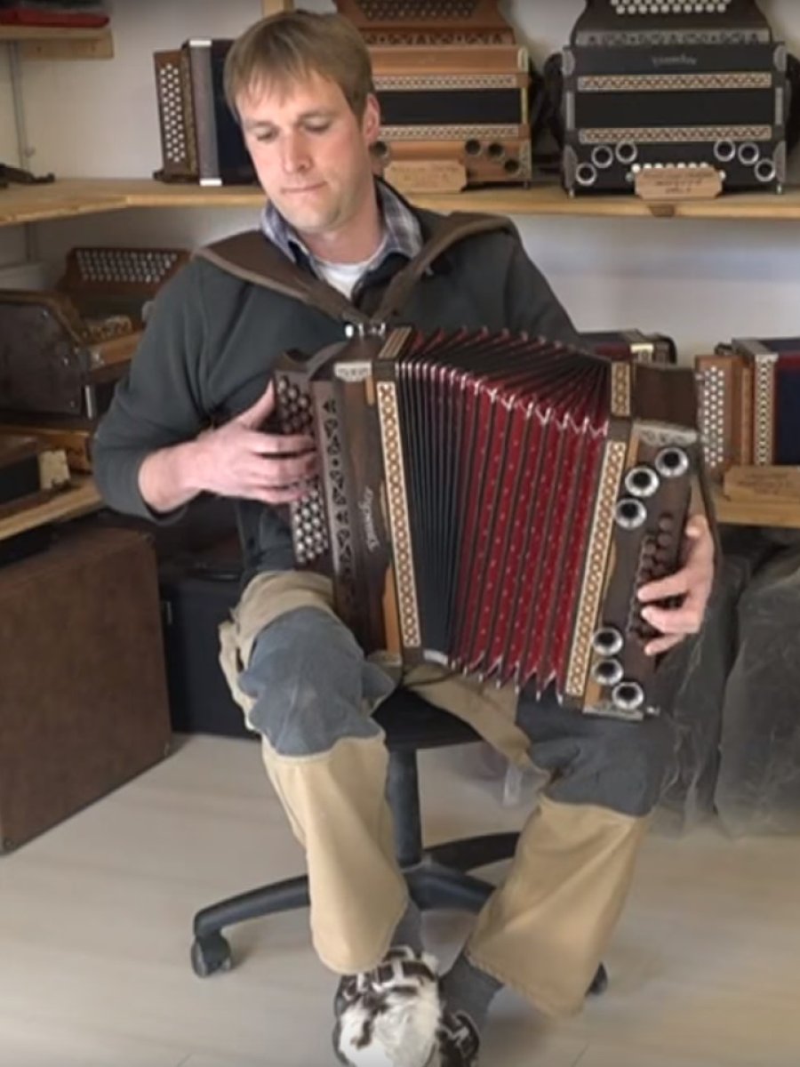 In seiner Instrumentenwerkstatt in Oberstdorf entstehen Steirische Harmonikas, Schwyzerörgeli aber auch Spezialinstrumente. Gemeinsam mit seinem Angestellten, Lukas Brutscher, baut und repariert er diese wunderbaren Holzinstrumente mit viel Liebe zum Detail. Die verschieden Holzarten die beim Bau verwendet werden, haben direkten Auswirkung auf Klang und Stabilität. Umso weicher ein Holz ist, desto wärmer wird beispielsweise der Klang.
