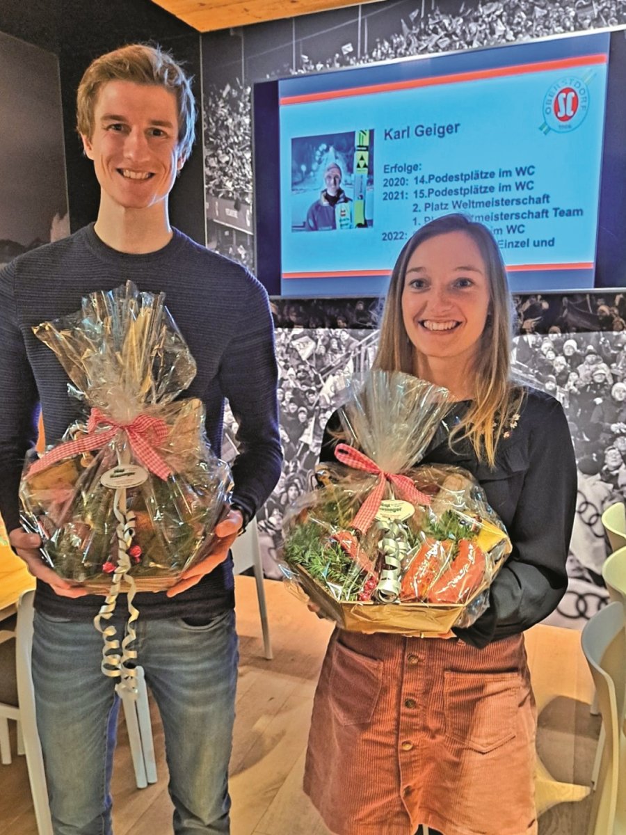 „Wir sind immens stolz darauf, so viele Sportler und Trainer zu haben, die so viel leisten“, lobte er. Anschließend übernahm BR-Sport-Moderator Bernd Schmelzer das Ruder. Der Reporter führte durch den Abend, entlockte den Sportlern Kommentare zu großartigen Erfolgen und Wünsche für die kommenden Wettkämpfe. Zuversichtlich sind alle Athleten in die neue Saison gegangen. Manche dürfen erstmals im Weltcup starten, andere haben sich inzwischen einen festen Platz erobert. Folgende Sportler wurden geehrt: Langlauf: Verena Veit, Germana Thannheimer, Coletta Rydzek, Sofie Krehl und Laura Gimmler Alpin/Telemark: Elina Lipp, Christina Ackermann, Jonas Schmid, Paula und Coletta Frick Nordische Kombination/Skispringen: Julian Schmid, Vinzenz Geiger, Johannes Rydzek, Karl Geiger und Katharina Althaus