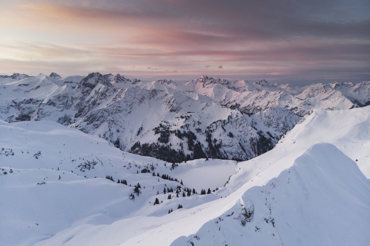 Ein absoluter Wow-Moment. An klaren Wintertagen reicht der Blick über unzählige Gipfel der Allgäuer Alpen. Der Schnee bringt Struktur in die Landschaft, die Fernsicht ist oft spektakulär und das Licht verändert sich hier oben ständig. Perfekt für Panoramaaufnahmen.