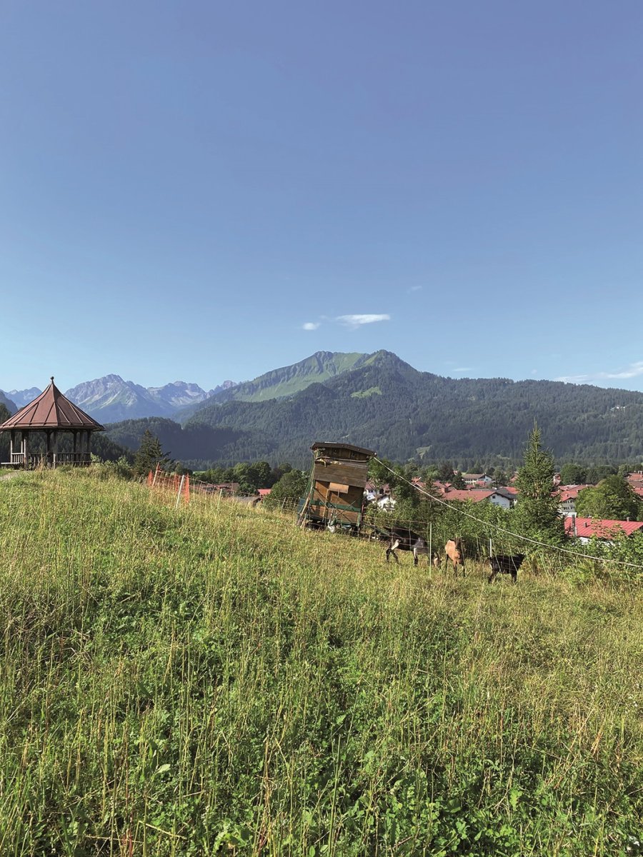 In schlechten Zeiten gab es viele, im Wohlstand werden sie nur von Liebhabern gehalten. So wurden bis nach 1960 auch in Oberstdorf zahlreiche Geißen gehalten, deren Anzahl zu den Höchstzeiten bei über 100 Tieren lag. Da Geißen ihren Futterbedarf hauptsächlich über verholzte Sträucher (bspw. Hasel & Weide) decken, eignen sie sich an verbuschten, mageren Standorten hervorragend zur Landschaftspflege, insbesondere da wo ansonsten aufwendige Handarbeit notwendig wäre. Die Kurbetriebe Oberstdorf möchte diese Tradition aufleben lassen und setzen deshalb seit Juli diesen Jahres wieder Geißen zum Erhalt der Kulturlandschaft und dem Schutz von Natur und Biotopen ein. Den Juli & August haben die fünf Nutztiere auf der Katharinenruhe verbracht, bis zum Herbst werden sie je nach Anforderung an weiteren Standorten im Bereich der Marktgemeinde Oberstdorf eingesetzt.