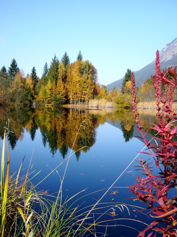 Besonders beeindruckend ist der Kontrast zwischen den leuchtenden Farben der Laubbäume und den immergrünen Nadelbäumen wie Fichten und Tannen, die das ganze Jahr über ihre tiefgrüne Farbe behalten.
