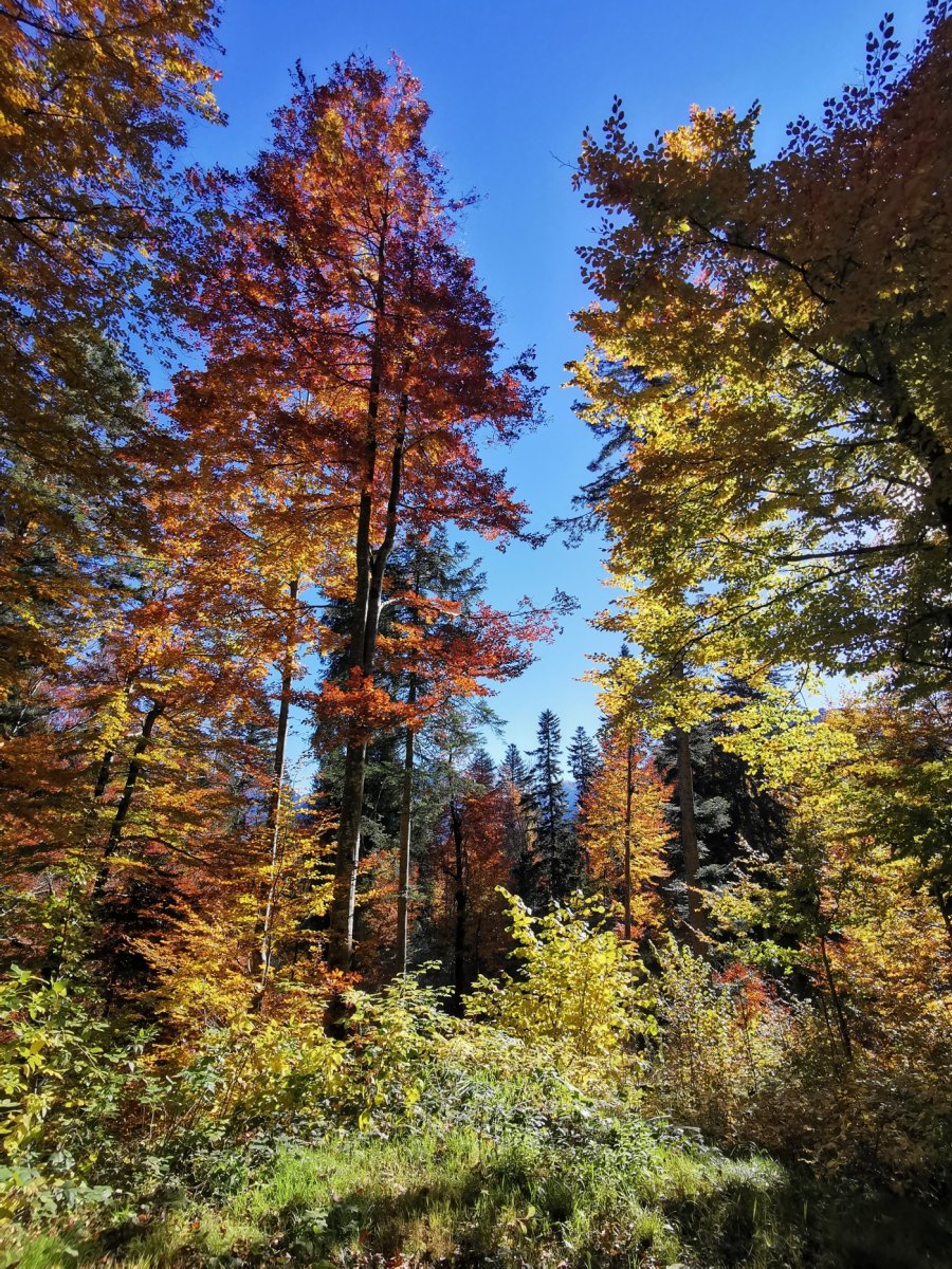 Anders als in vielen anderen alpinen Regionen, wo Nadelwälder dominieren, prägt hier der Bergmischwald das Landschaftsbild. In diesen Wäldern gedeihen zahlreiche Laubbaumarten wie z.B. Buche, Berg-Ahorn, Esche und Vogelbeerbaum, die im Herbst für ein wahres Farbenmeer sorgen.