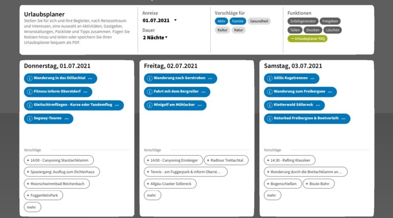 Das Herzstück des Internetauftritts ist der Oberstdorfer Urlaubsplaner, ein neues Werkzeug mit dem der Besucher seinen individuellen Urlaub zusammenstellen kann.