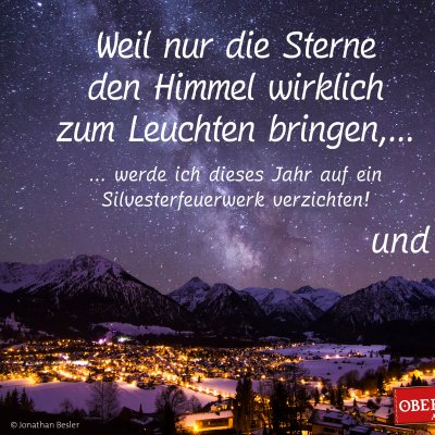Wir, Tourismus Oberstdorf, in Abstimmung mit dem Tourismusbeirat Oberstdorf, starten den Aufruf, in der Silvesternacht auf das Abbrennen von Feuerwerkskörpern und Böllern zu verzichten.