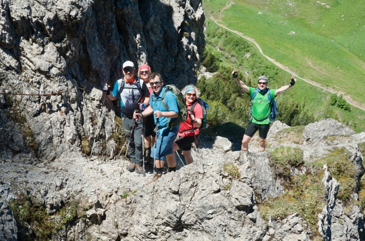 Mit drahtseilversicherten Abschnitten, einer schmalen, ausgesetzten Passage entlang einer Felswand und zwei luftigen, über Abgründe führenden Metallstegen braucht es hier unbedingt ausreichend Erfahrung, Schwindelfreiheit und Trittsicherheit.