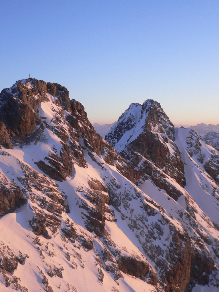 Winter- Alpinismus vorstellen, mit welchen hervorragenden Materialien die Hochtouristen heute bei Schnee, Eis und Kälte unterwegs sind! Als Lohn für ihre Mühen erwartete Fürst und Heiß vom Gipfel der Mädelegabel ein fantastischer Rundblick: Biberkopf, Hohes Licht, Großer Widderstein, die Schafalpenköpfe mit dem berühmten Mindelheimer Klettersteig, der Hochvogel und der Große Krottenkopf – all diese Höhepunkte der Allgäuer Berge präsentierten sich in näherer Umgebung.